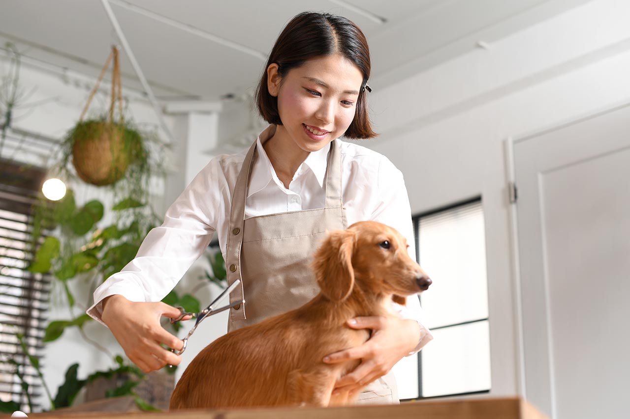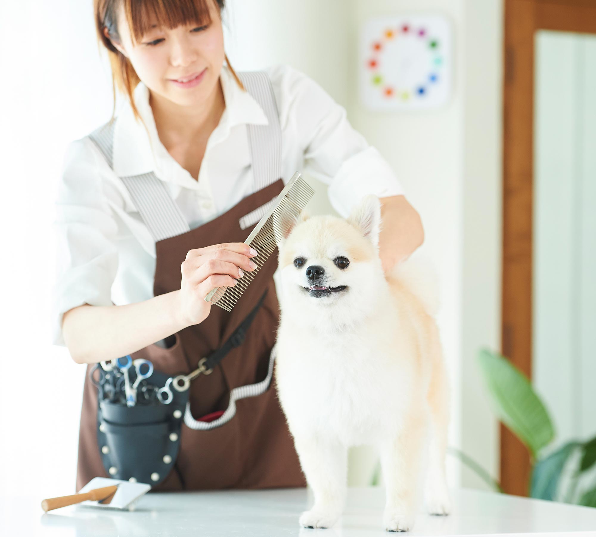 ワンちゃんと一緒にご来店ください。その日の体調や気になること、ご要望などをプロのトリマーが丁寧にお伺いします。