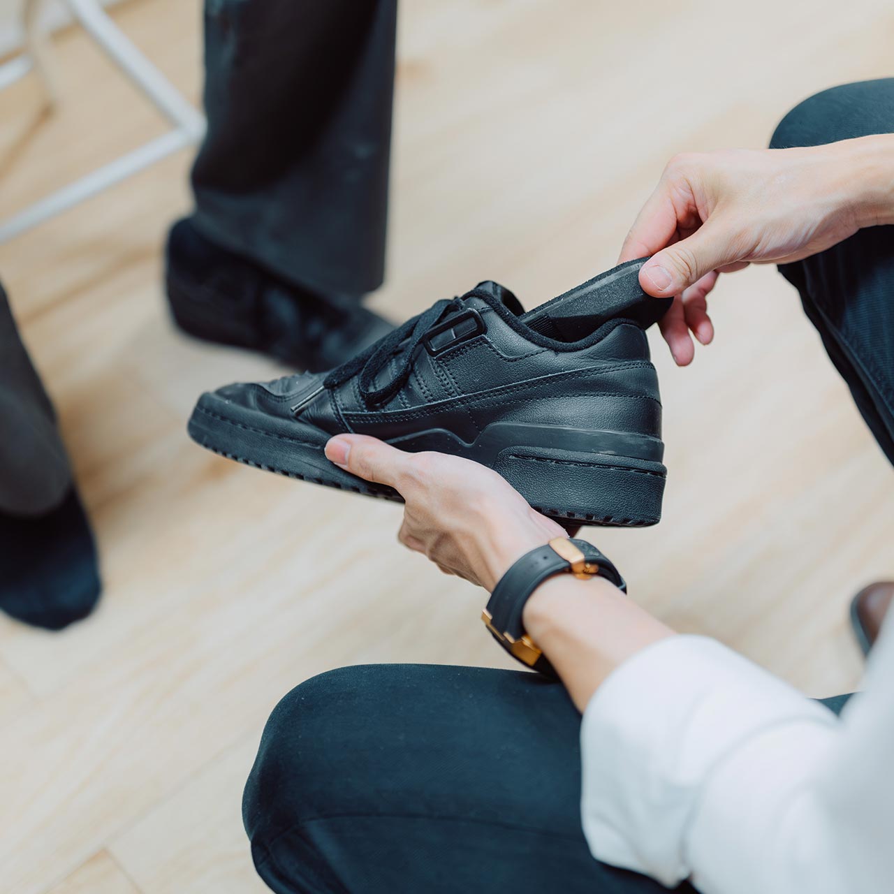 完成したインソールをお持ちいただいた靴に合わせ、フィッティングを行います。その場で実際に歩いていただき、履き心地や使用感やフィット感を確認しながら、ミリ単位で最終的な微調整を施します。また、インソールを効果的に使っていただくためのアドバイスや、身体が慣れるまでの注意点についても丁寧にご説明します。どうぞ安心してご相談ください。