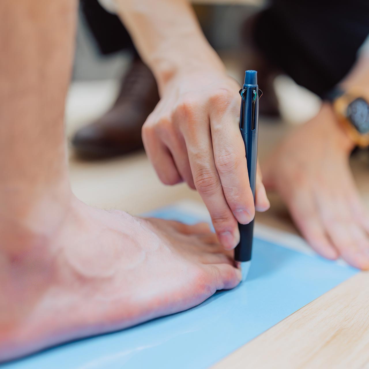 私たちは、単なる足の専門家ではありません。義肢装具士という国家資格を持ち、身体の構造と歩行のプロフェッショナルとして、圧倒的な専門性を誇ります。どのようなお悩みがあるのか。どうすれば快適な歩行をサポートできるのか。豊富な知識と経験で、お悩みの背景を丁寧にお伺いします。