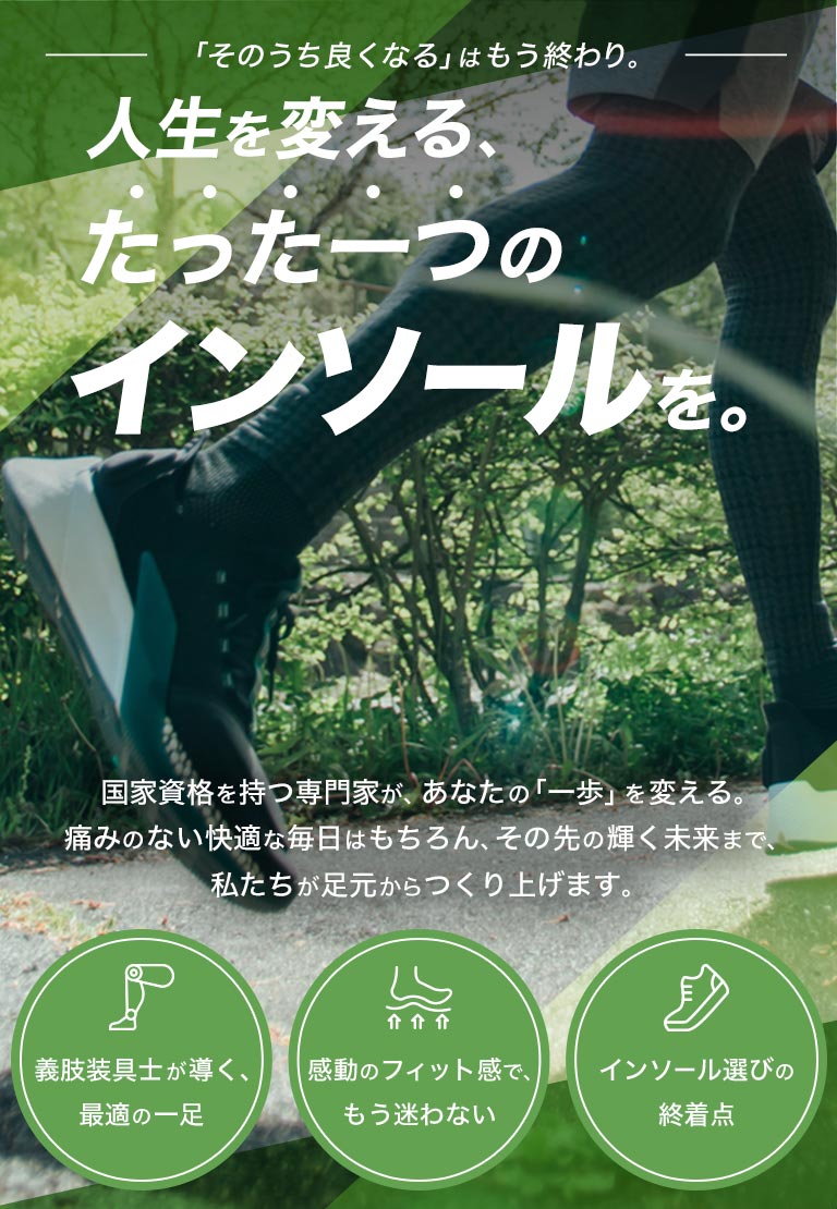 快適なインソールで、歩くことがもっと楽しくなる毎日を送りませんか。「今日は歩きすぎたかな…」という不安から解放され、軽やかな一歩をサポートします。