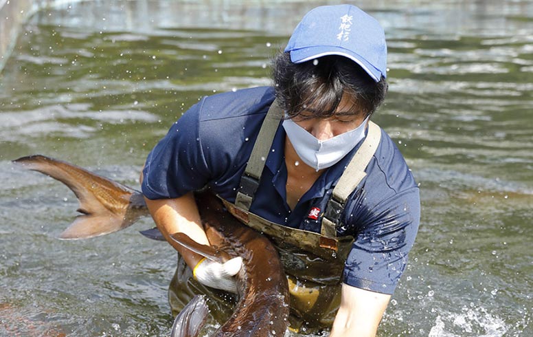 現在1,500匹を超えるチョウザメを養殖しており、約6~8年かけて大切に育成しています。蔵人が毎日愛情を込めて世話をする姿は、まさに職人魂の表れです。キャビアの極上の味わいには、“愛情”という名の最高の調味料が込められており、他では再現できない特別な逸品となるのです。