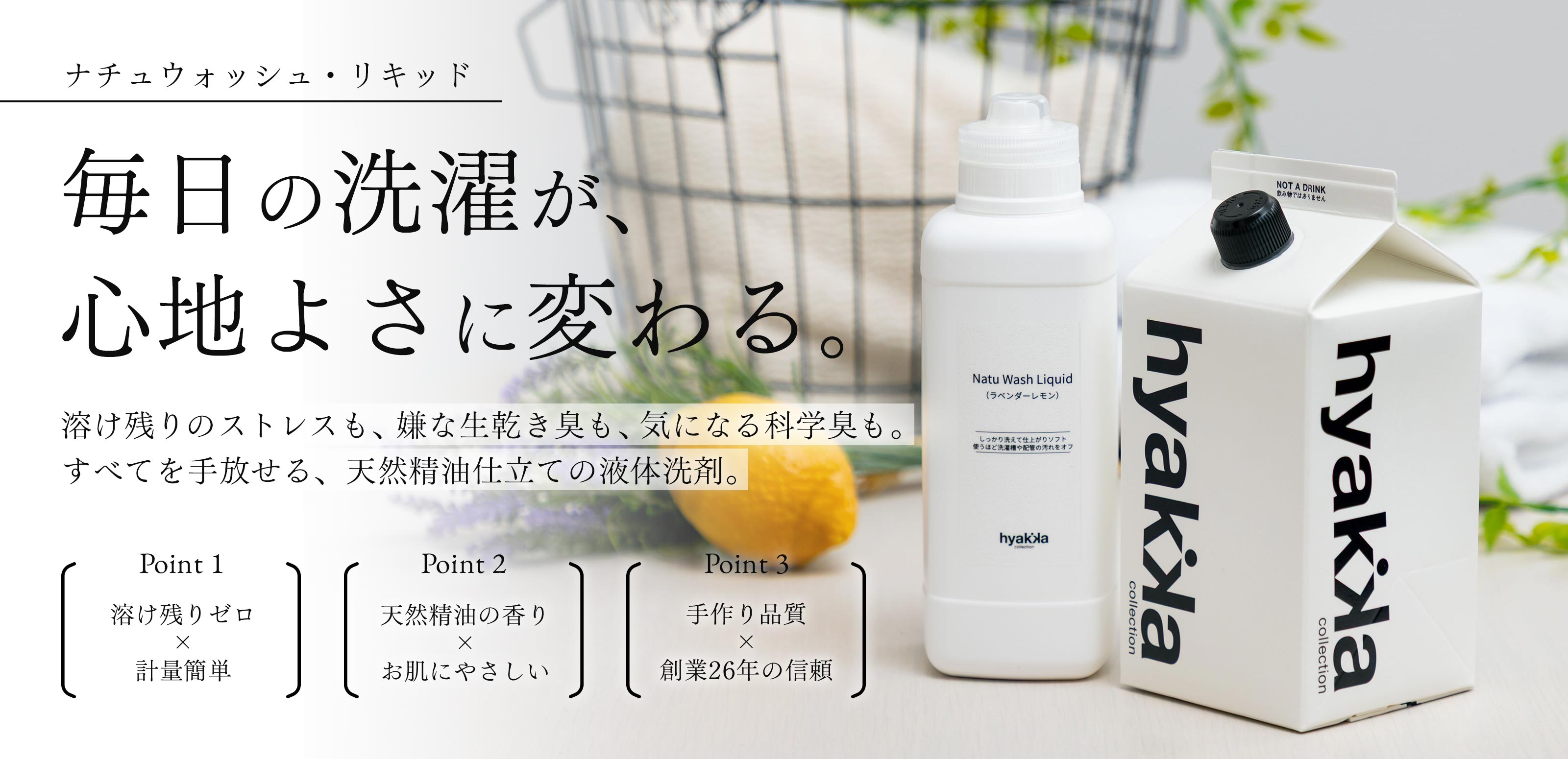 A: 香料も天然精油にこだわり、匂いに敏感な方でも楽しめるように設計しています。自然な香りで洗濯中も快適です。乾いた後はほぼ無臭になります。