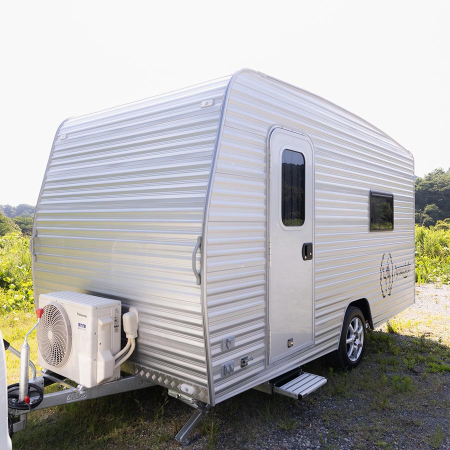 当社いちばんの特徴であるフィッティングトレーラーで、お客様のご自宅近くまで伺います。トレーラー内は、スタッフとお客様だけの完全プライベートな空間。まわりの目を気にせずに、じっくりドレスをお選びいただけます。