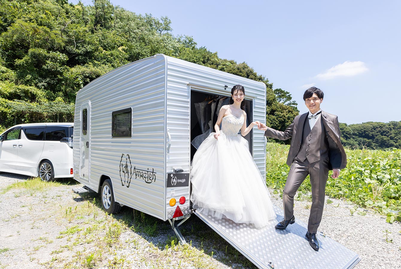そんなロケーションフォトの「あったらいいな」をすべて叶えるのが、私たちの専用フィッティングトレーラーです。出来上がった写真だけでなく、撮影の時間そのものも、かけがえのない思い出にしていただきたい。その想いの答えが、Amazigh Photo Weddingなのです。