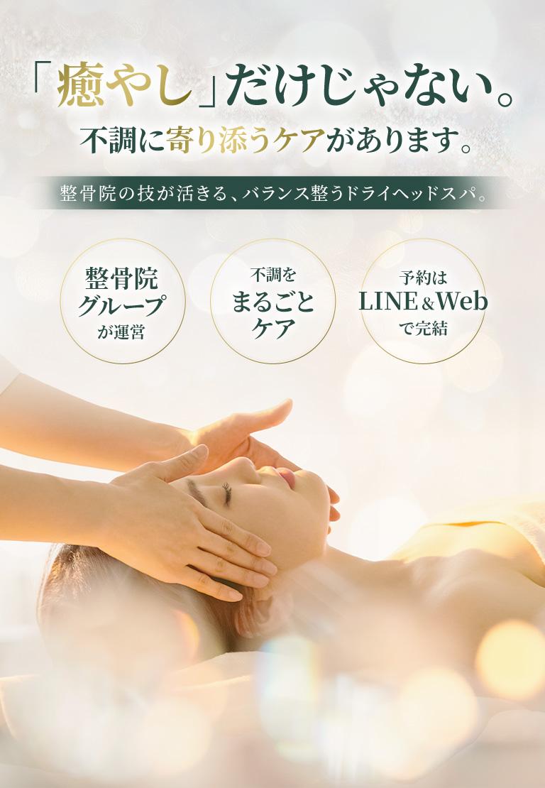 今日の疲れは、今日のうちに整えませんか?整骨院グループの専門知識を活かした、根本改善を目指すドライヘッドスパ体験をあなたにも。ご自身のスタイルに合った方法で、お気軽にご予約ください。