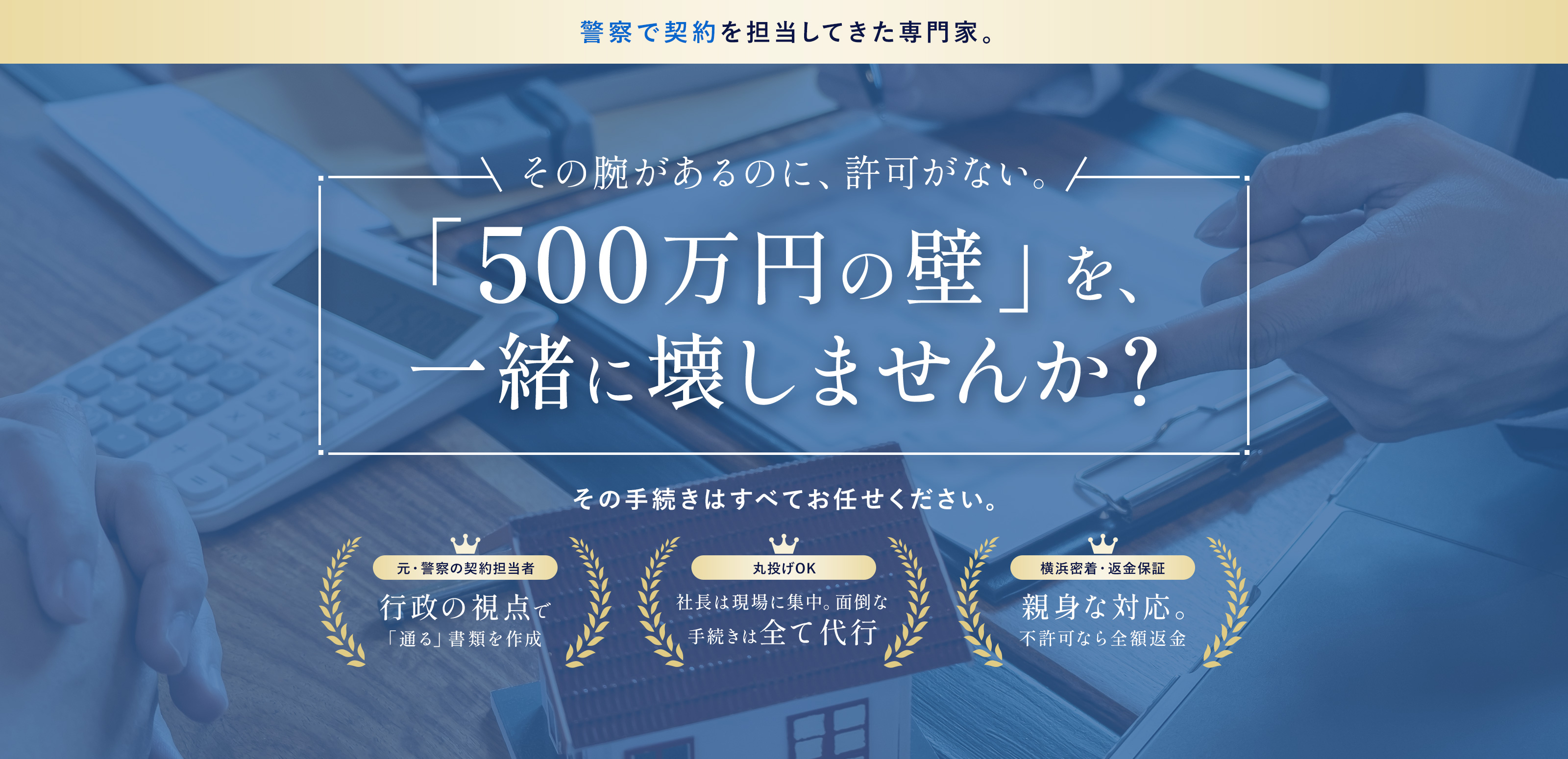 初回のご相談は完全無料。さらに、許可が取れなければ報酬はいただきません。