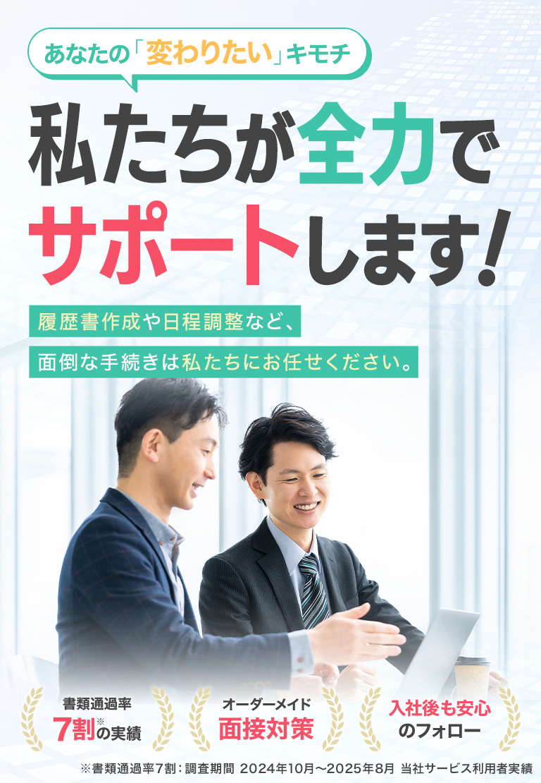私たちが、あなたの「変わりたい」という気持ちに寄り添い、ゴールまで徹底的にサポートします!