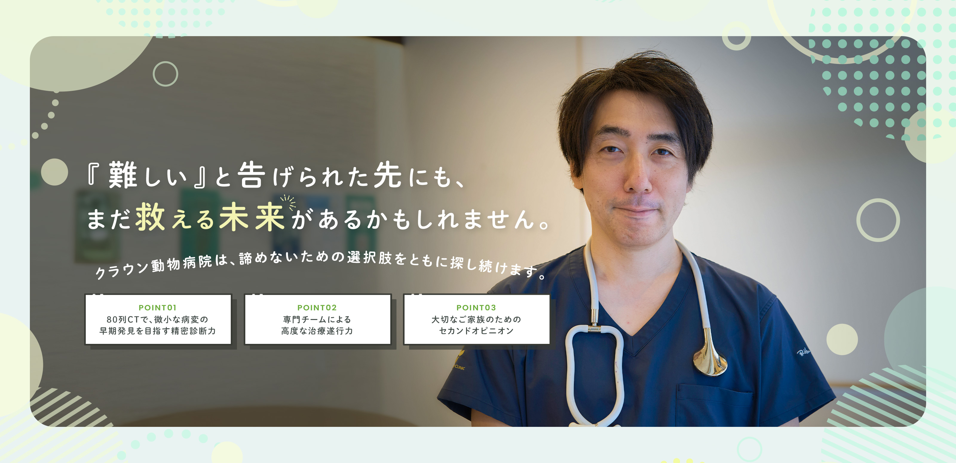 診断から手術、術後ケアまで、ワンストップでご家族を支え続ける。
