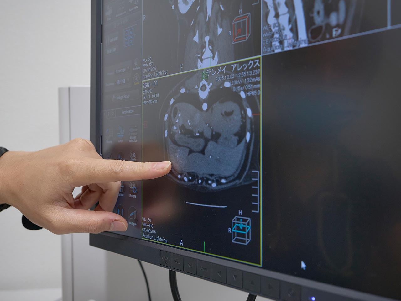 現状を正確に把握するため、必要に応じて血液検査やCT撮影を行います。検査前には、目的や費用、リスクについて丁寧に説明いたします。