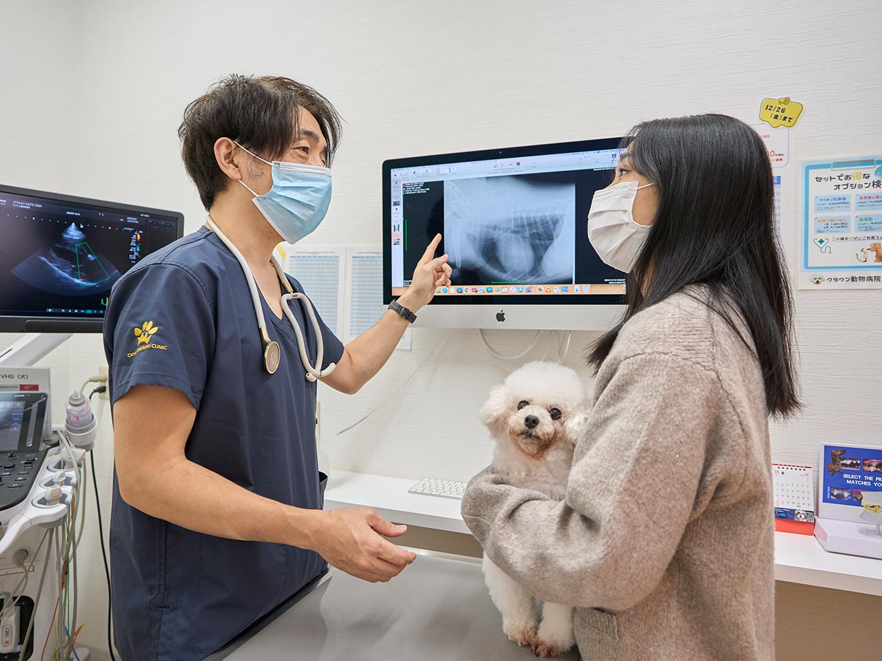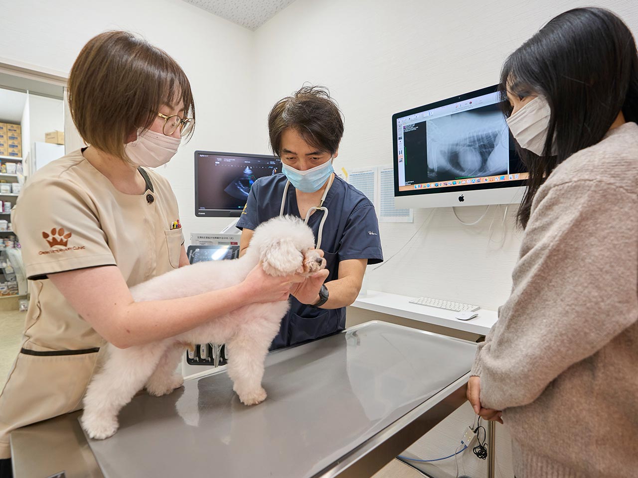 検査結果をもとに、病状と複数の治療選択肢をメリット・デメリット含めてご提示します。ご家族が納得できるまで、何度でもご説明します。