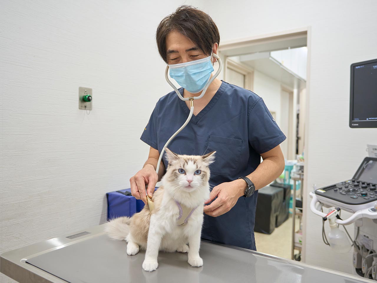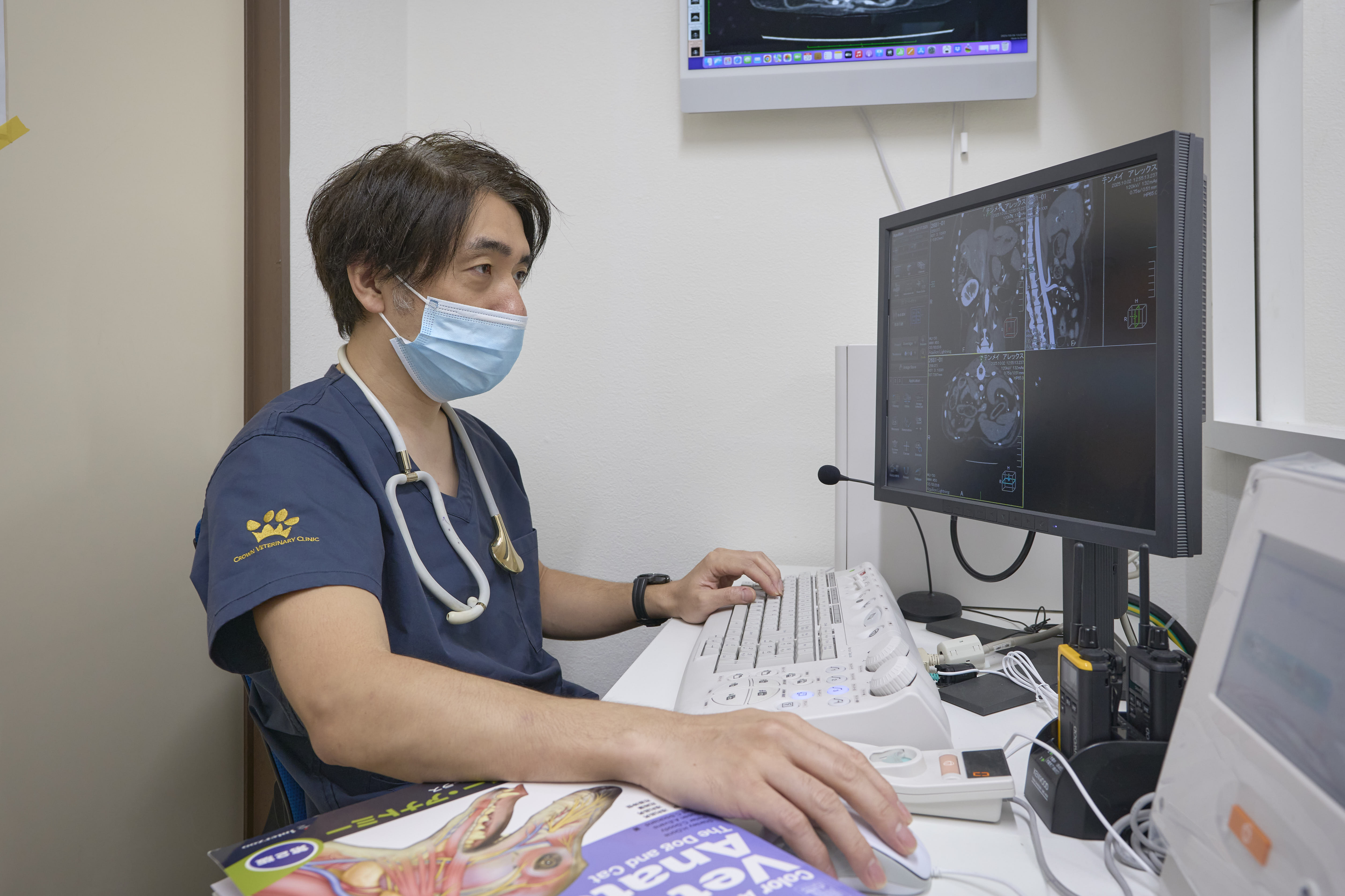 嘔吐や下痢、ホルモンの異常など、原因の特定が難しい内科疾患を担当。CTなどの高度な検査機器も活用し、根本的な治療を目指します。
