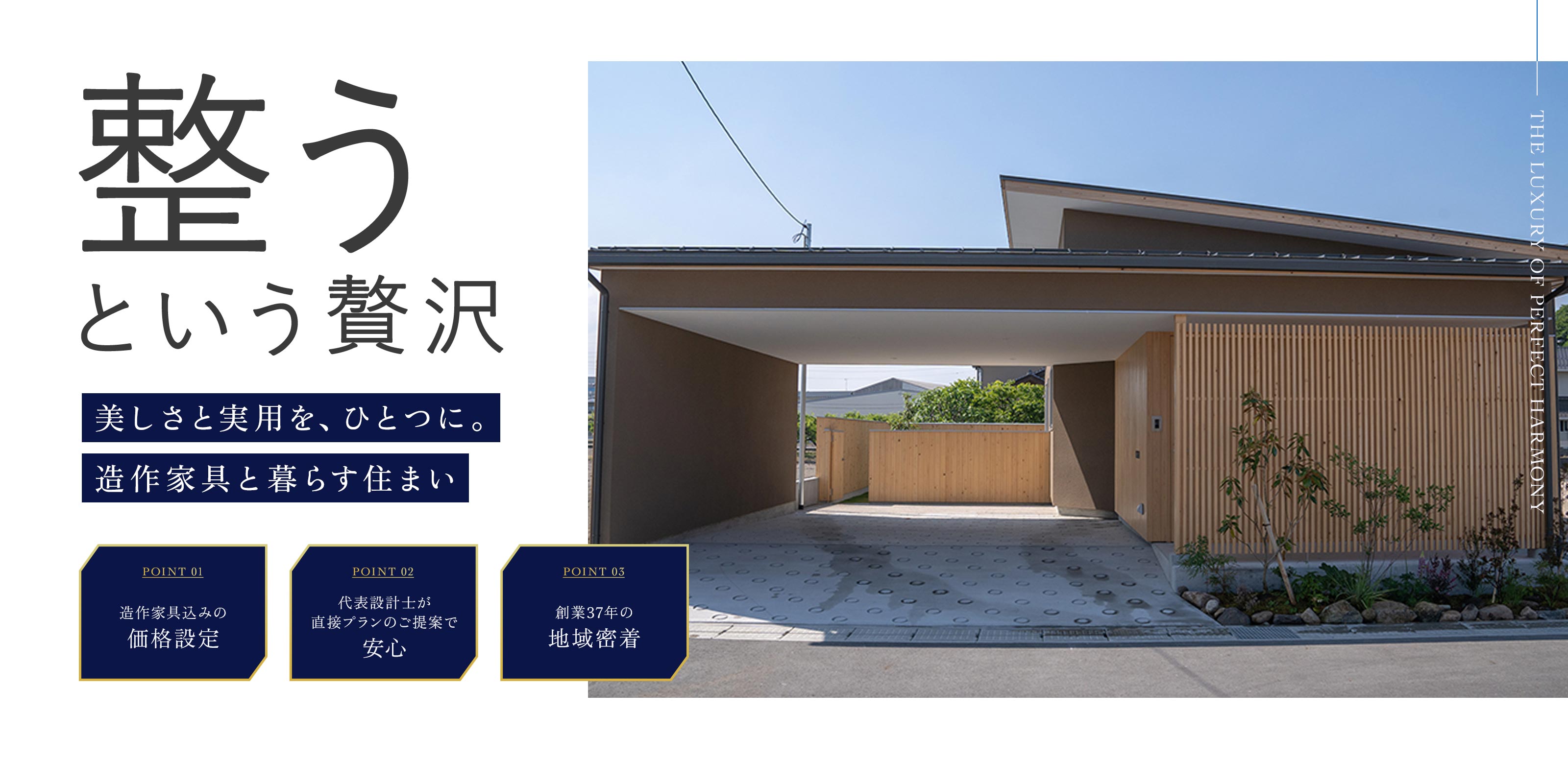 見た目の美しさだけでなく、実際の暮らしやすさを。 デザインの良さだけでなく、確かな性能を。 今の満足だけでなく、将来の価値を。すべてを「ちゃんと」考えることで、本当に永く愛される家が生まれると信じています。造作家具を含めたトータルデザインも、この想いから生まれました。既製品では実現できない、あなたの暮らしに寄り添う家具。それが建築と一体となることで、より豊かな空間が生まれます。