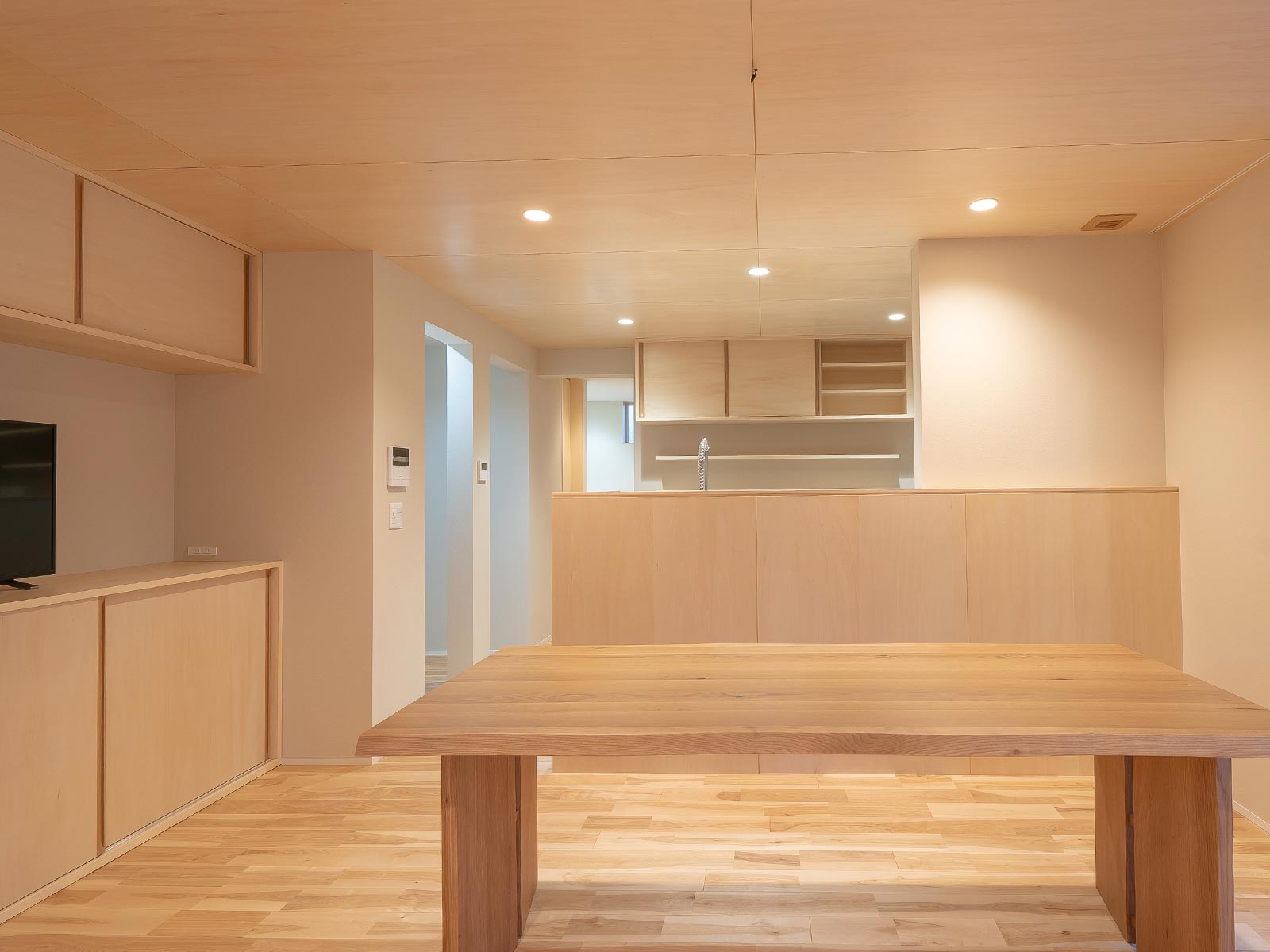 建築と家具を同時に設計することで、扉の高さ、収納の奥行き、素材の質感まで、すべてが調和する空間を実現。しかも造作家具は建築費に含まれているため、原則として追加費用はかかりません。