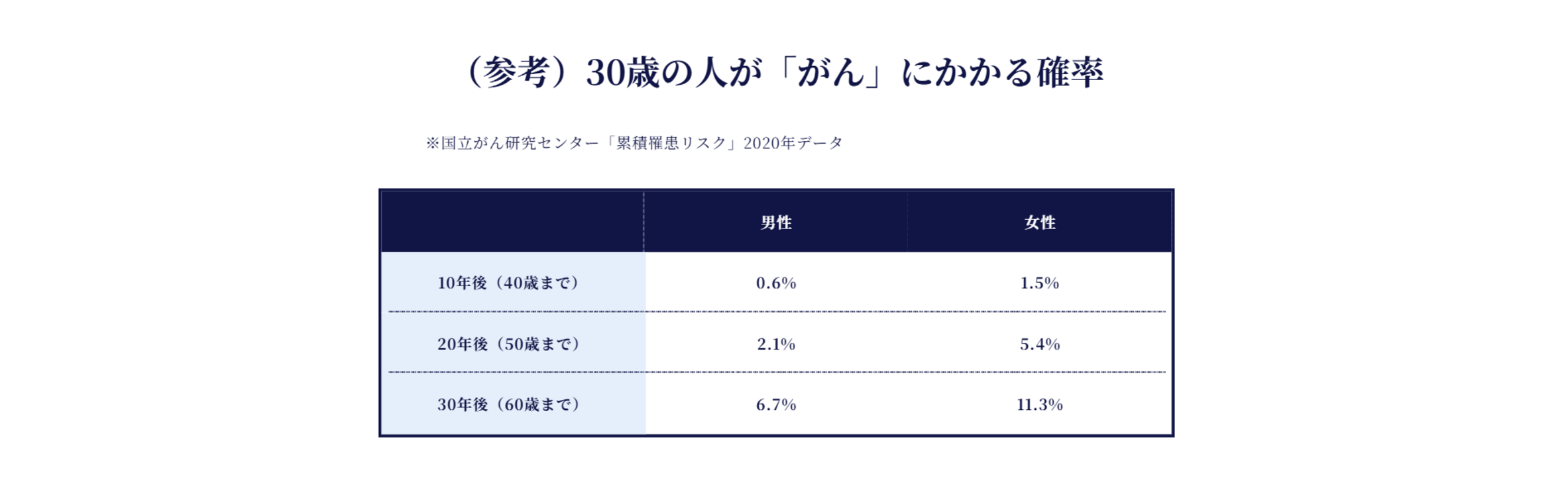 もちろん、いますぐに大きな病気になるというわけではありません。しかし、10年、20年といった期間の中で、大きな病気になる確率は無視できません。