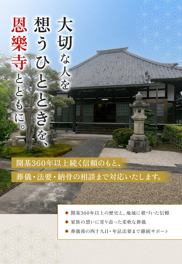 ※葬儀社がお決まりの場合は、菩提寺は「恩楽寺」とお伝えください。