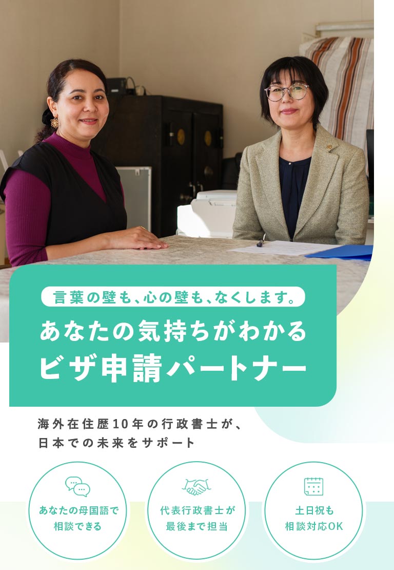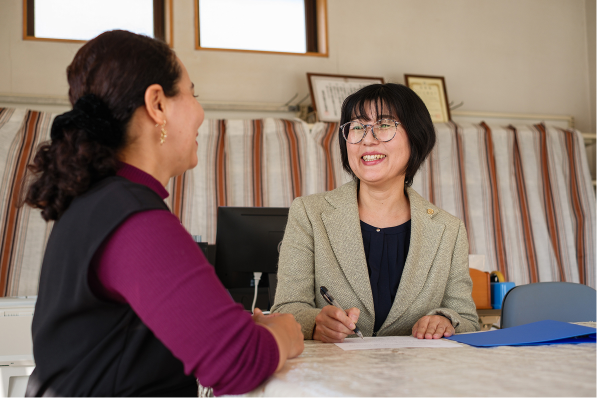 私も海外で生活していたので、言葉の壁やむずかしい手続きで悩みました。だからこそ心に寄りそい、最後まで一緒に歩みます。