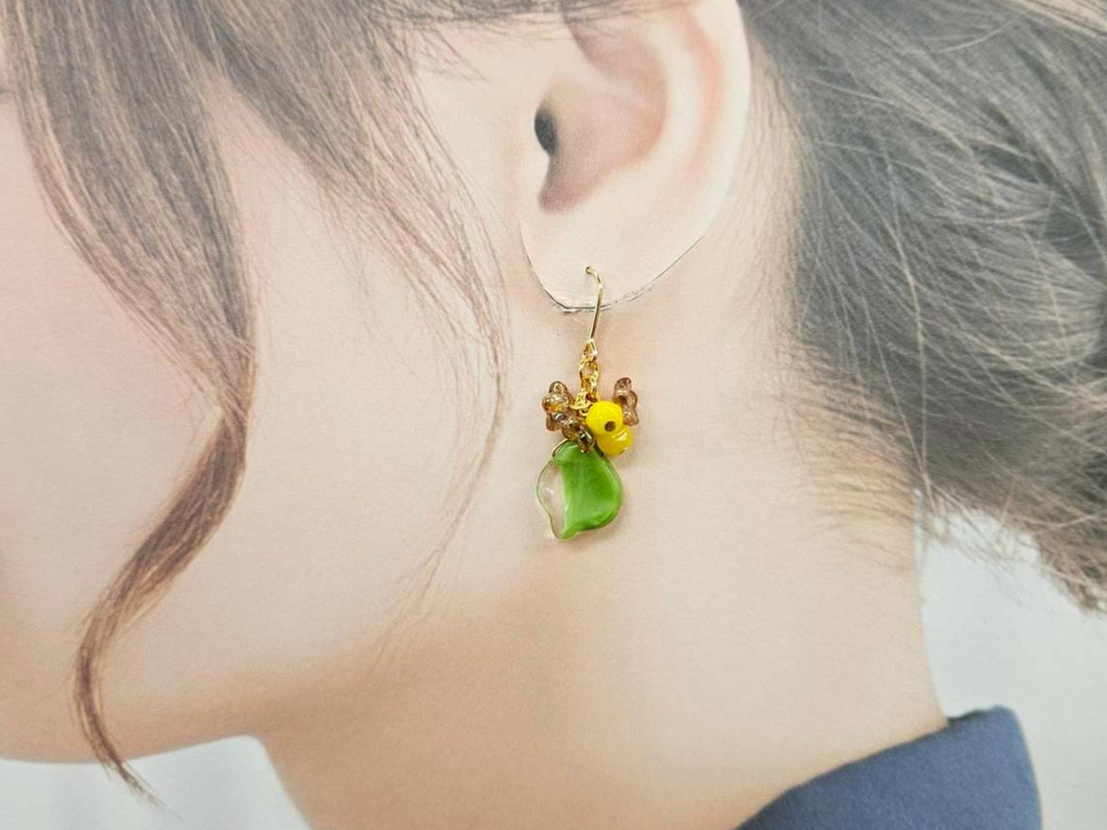 耳元で繊細に揺れる、ヴィンテージビーズのイヤリングとピアス。シンプルながらも確かな存在感があります。