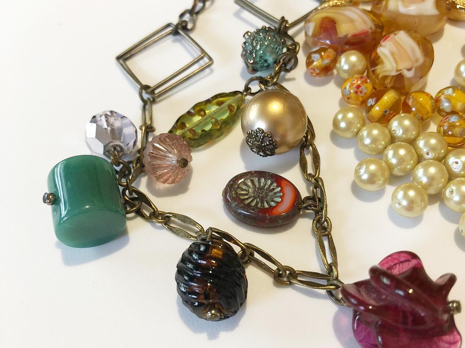当店のヴィンテージビーズアクセサリーは、基本的に一点ものでここでしか手に入らないもの。一般的なアクセサリーの違いをご紹介します。