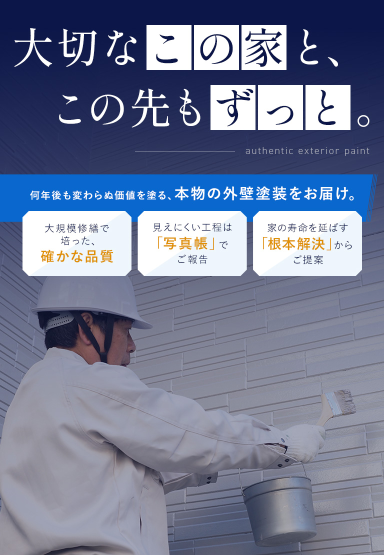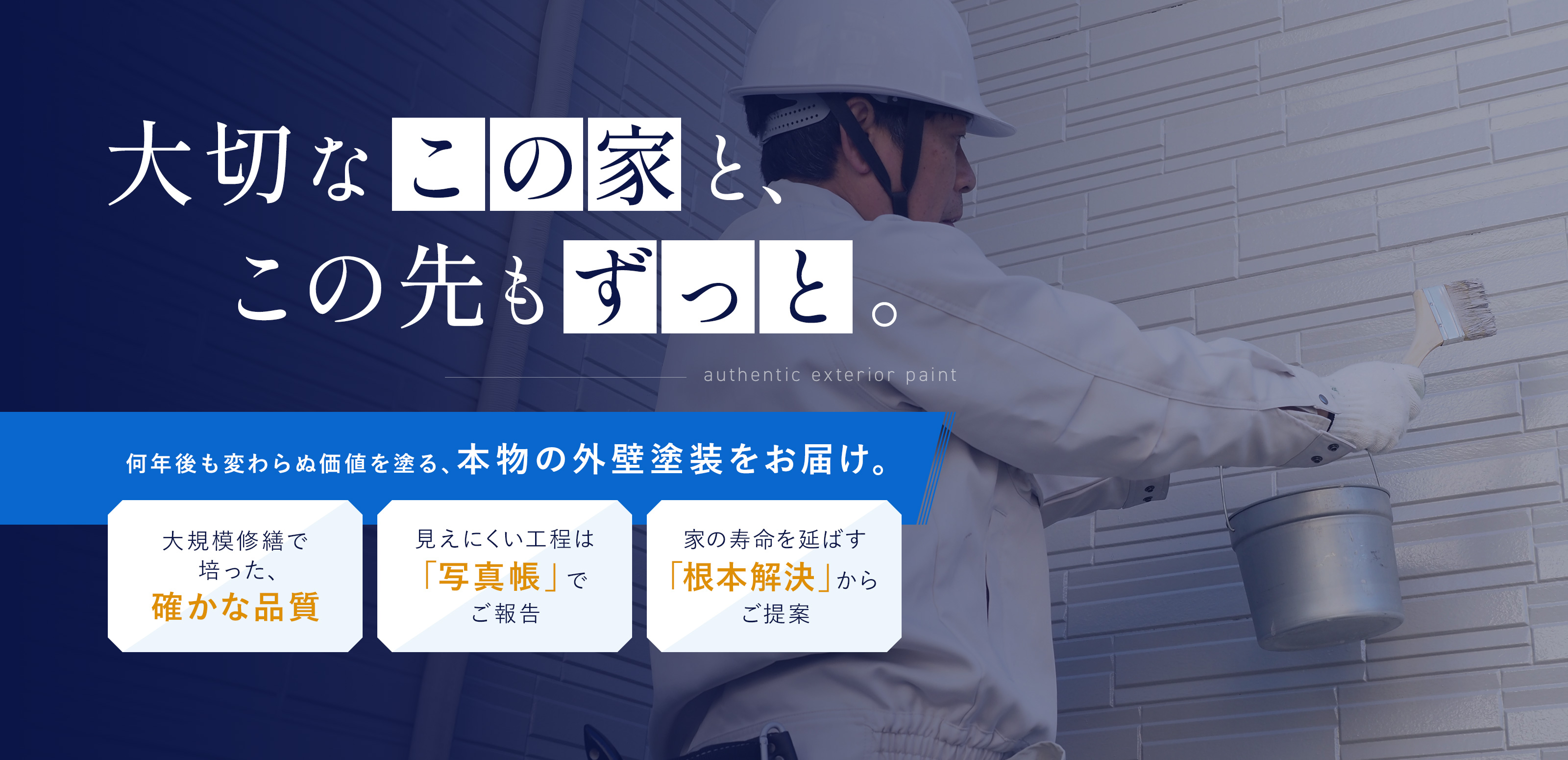 外壁の塗装を通して、今の暮らしをもっと豊かにするお手伝いをすることが、私たちの喜びです。